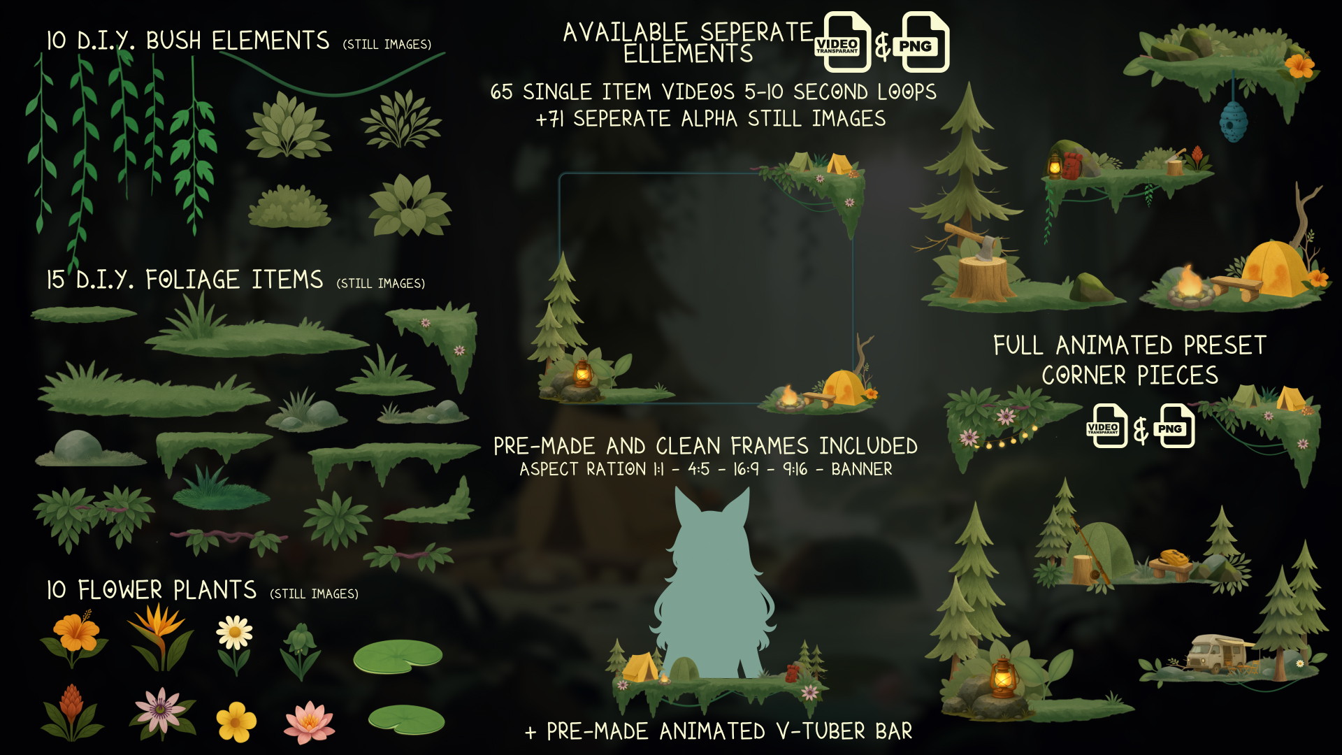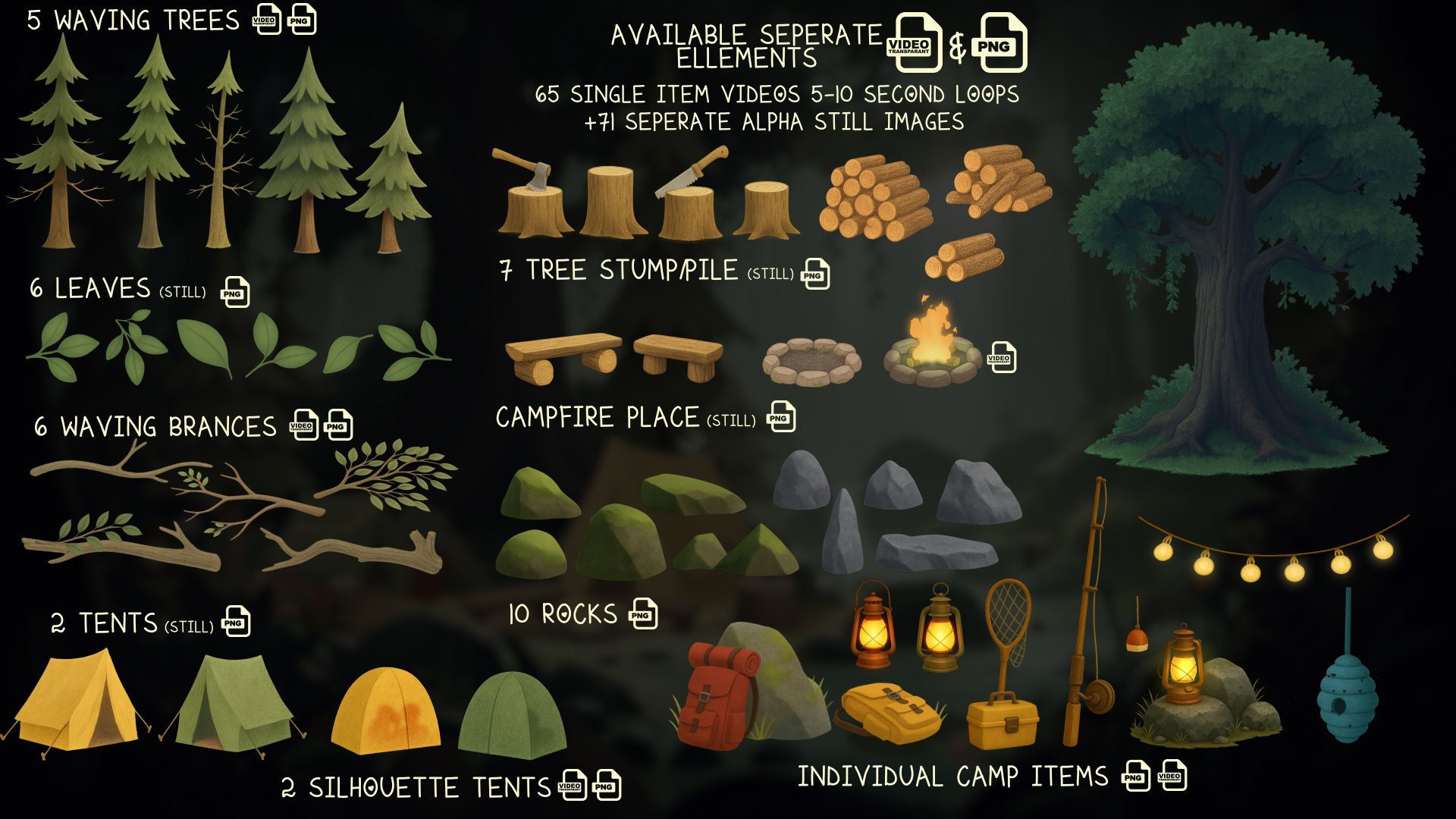 • DIY Assets: 100+ animations and stills (transparent PNG + looped WebM)